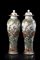 Coppia di piccoli vasi a balustro con coperchio con decorazione floreale in...
