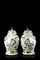 Coppia di grandi giare con coperchio decorate in smalti Famglia Verde con...