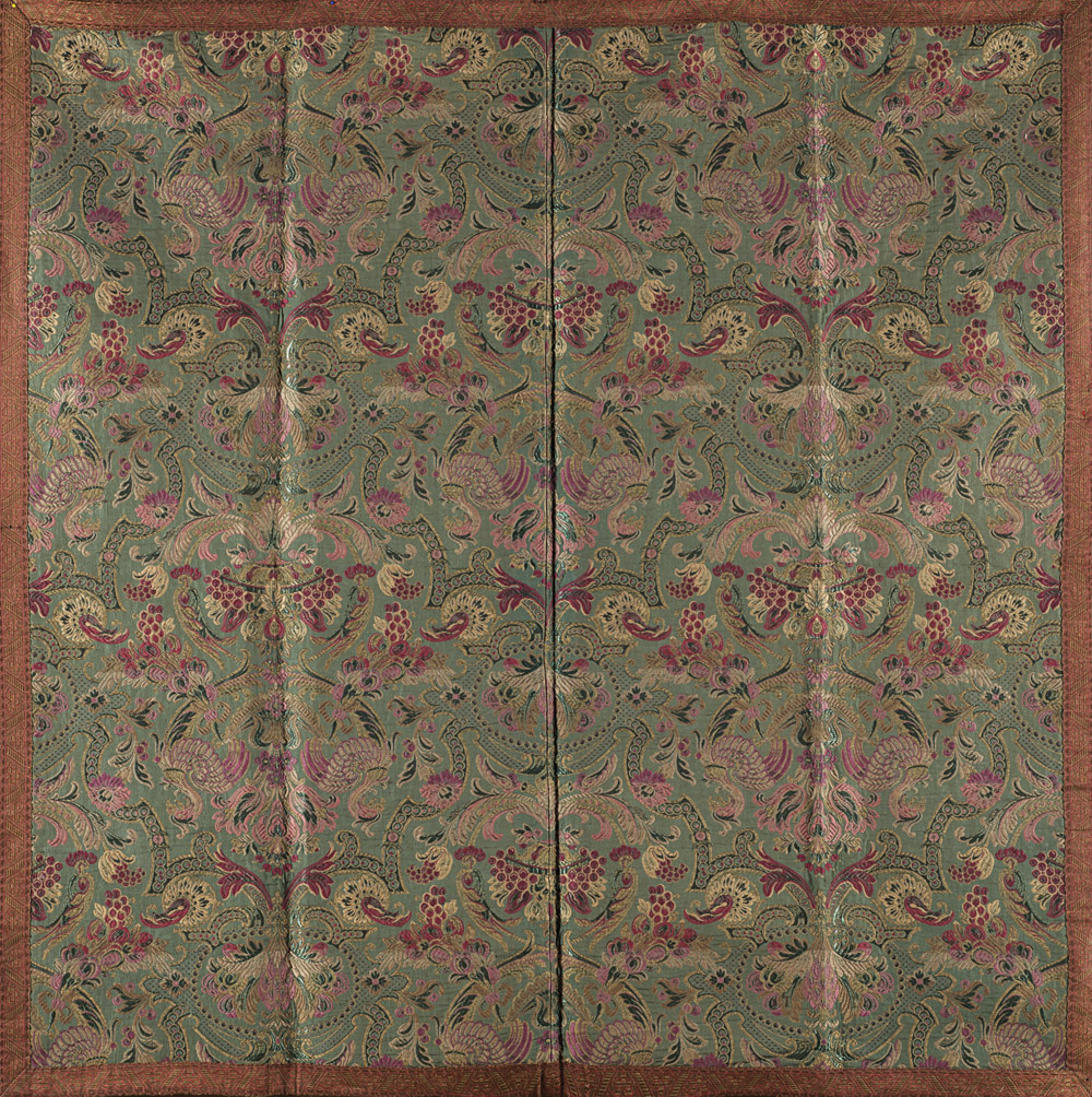 Tessuto jacquard decorato a volatili e motivi floreali in stile orientale Fine sec. XIX-inizio sec. XX A jacquar textile decorated with birds and leaves Late 19th/early 20th century (120x120 cm.)