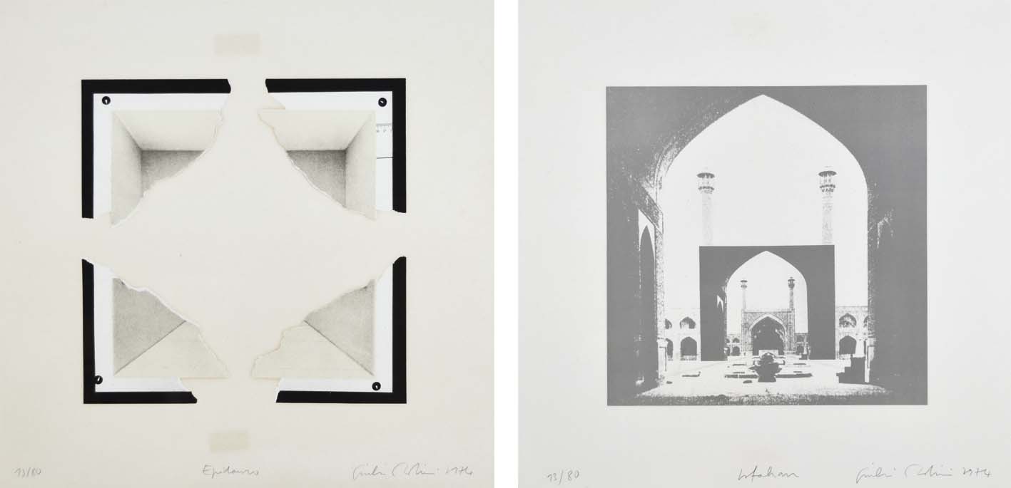 PAOLINI GIULIO Genova 1940 Epidauro - senza titolo 1974 lotto di 2 litografie es. 13/80 50x50 cad. firma data titolo e tiratura in basso