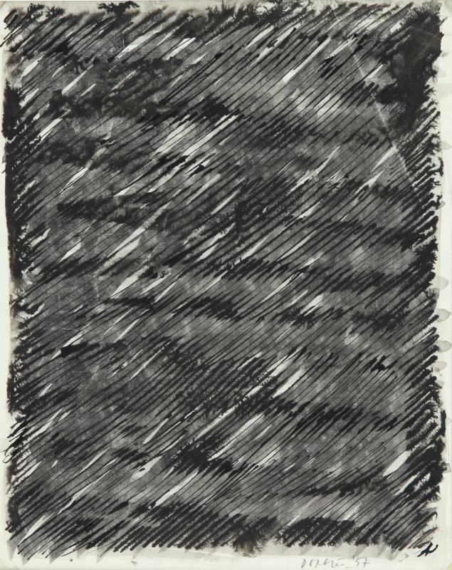 PIERO DORAZIO (1927-2005) Senza titolo 1957 china acquarellata su carta cm 28x22 firmato e datato in basso a destra l'autenticità è stata confermata verbalmente dall'Archivio Dorazio