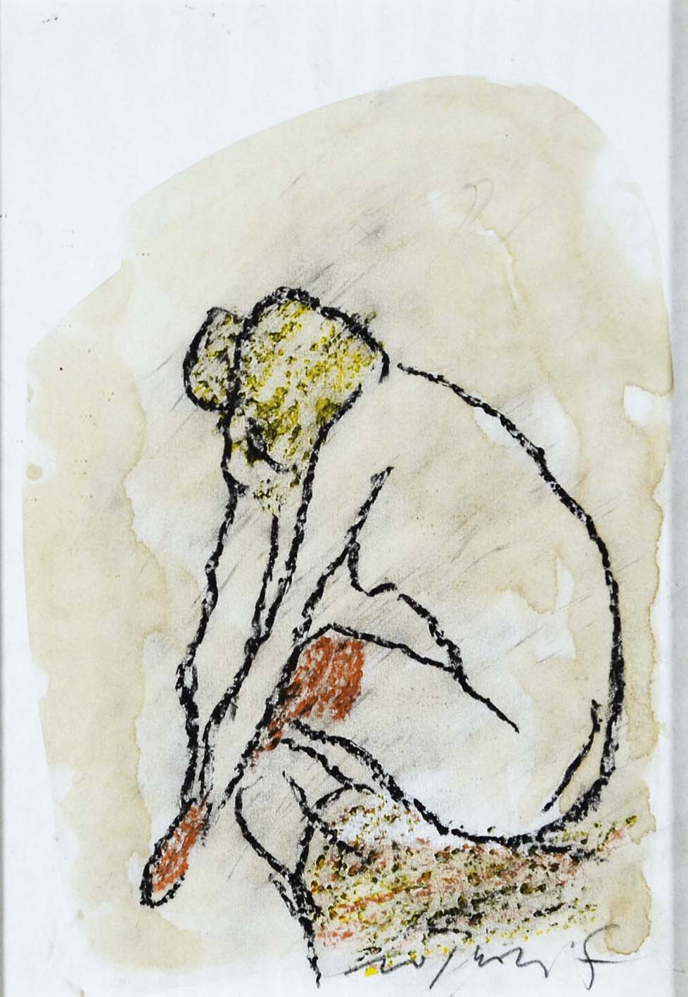 ROGNONI FRANCO Milano 1913 - 1999 Figura tecnica mista su carta 30x20 firma in basso a destra autentica della moglie Mariuccia Rognoni Noè su foto