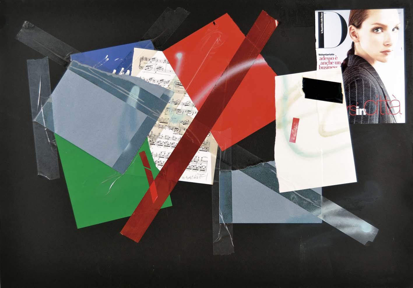 CHIARI GIUSEPPE Firenze 1926 - 2007 senza titolo (anni '80) tecnica mista e collage 70x100 firma al centro "Giuseppe Chiari" ed. Studio Delise Galleria d'Arte Portogruaro 2007