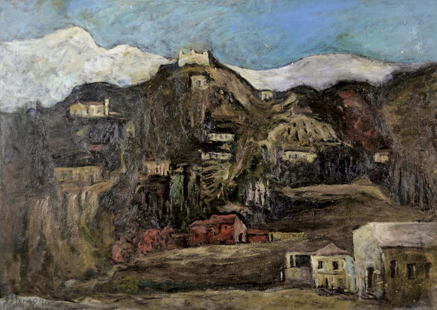 SLONGO PIERO Mogliano Veneto 1928 - Treviso 2015 La rocca Asolo 2003 olio su tavola 50x70 firma e data in basso a sinistra, firma data e tiolo al retro
