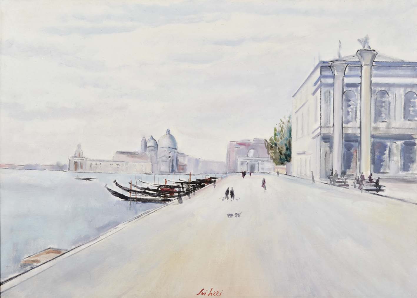 SEIBEZZI FIORAVANTE Venezia 1906 - 1975 Piazzetta San Marco (anni '40) olio su tela 50x70 firma in basso al centro e al retro