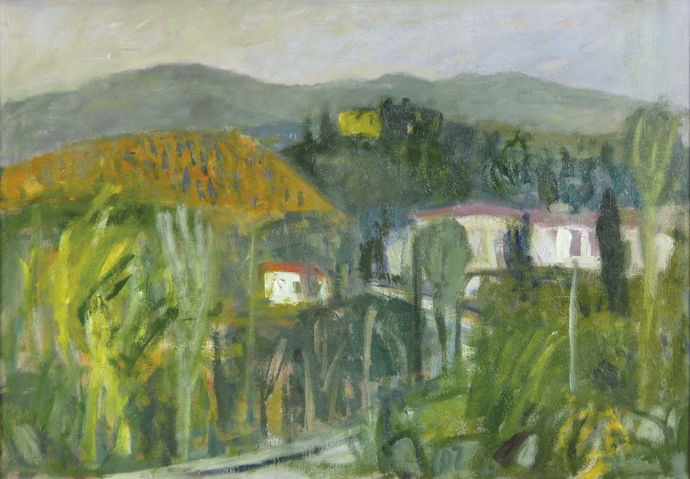 DALLA ZORZA CARLO Venezia 1903 - 1977 Asolo verso il Grappa (1955) olio su cartone telato 35x50 siglato in basso a destra autentica dell'Archivio delle Opere di Carlo Dalla Zorza a cura della Galleria Ponte Rosso Milano nr. Rep. 185/55.1.8 su foto Galleria d'Arte 77 Abano Terme - timbro al retro