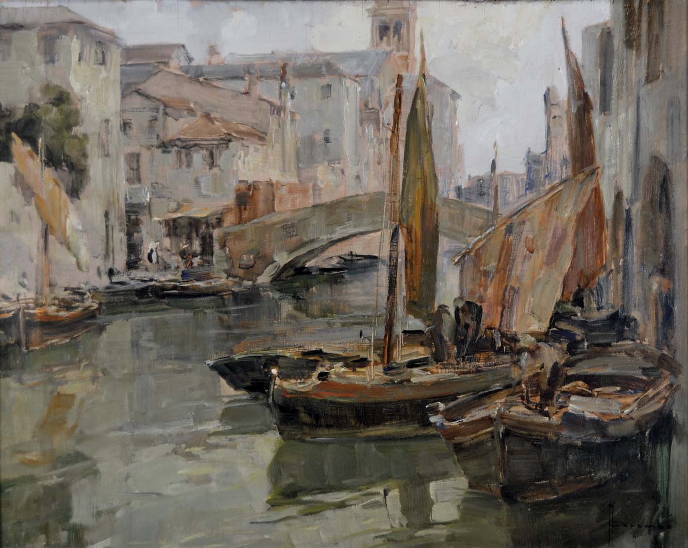 BROMBO ANGELO Chioggia 1893 - 1962 Ponte Scarpa Chioggia olio su tavola 40x50...