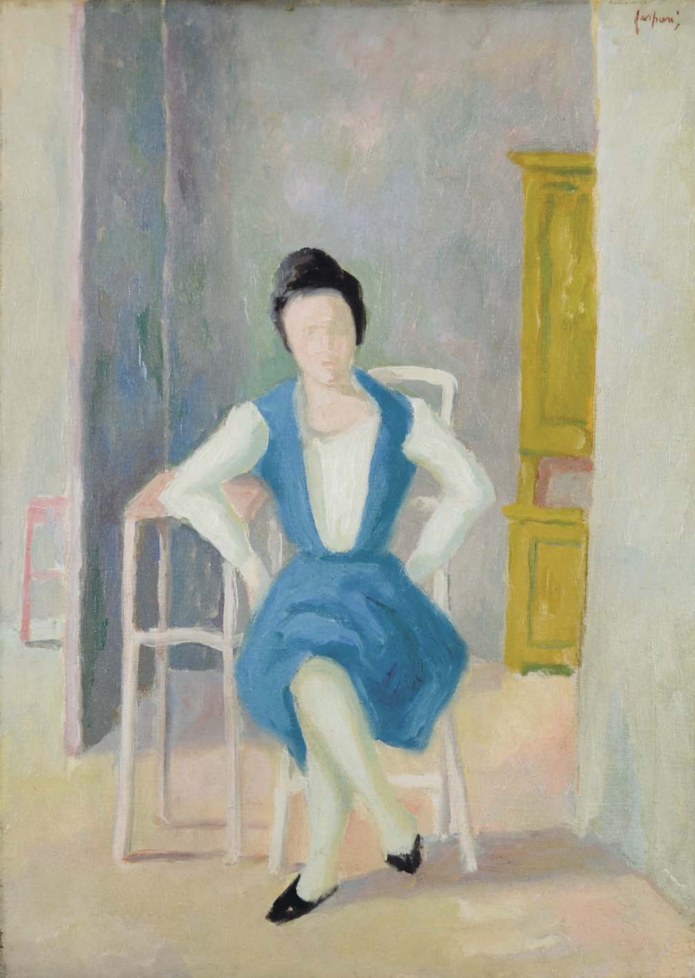 GASPARI LUCIANO Venezia 1913 - 2007 Ragazza nello studio 1942 olio su tela 65x45 firma in alto a destra Galleria del Millione Milano - etichetta e timbro al retro
