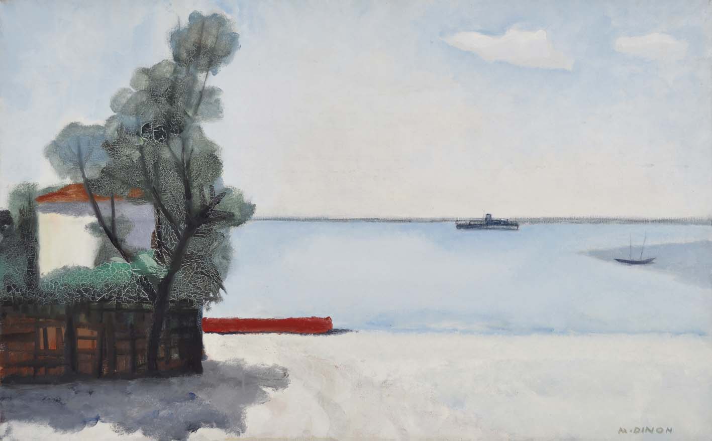 DINON MARIO Venezia 1914 - 1967 Paesaggio lagunare olio su tela 50x80 firma in basso a destra etichetta dell'Autore al retro