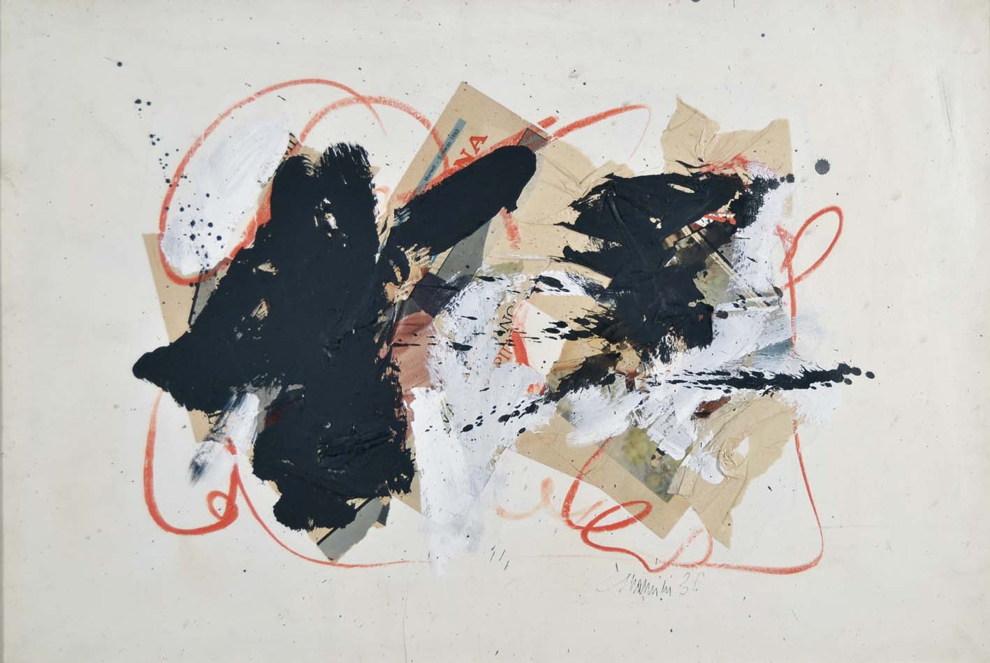 GUARNIERI ODDINO Cavarzere 1932 - 2015 Composizione 1969 tecnica mista e collage su carta intelata 65x44 firma e data in basso al centro da il Gazzettino 1990 recensione della Mostra alla Galleria Minima Mestre