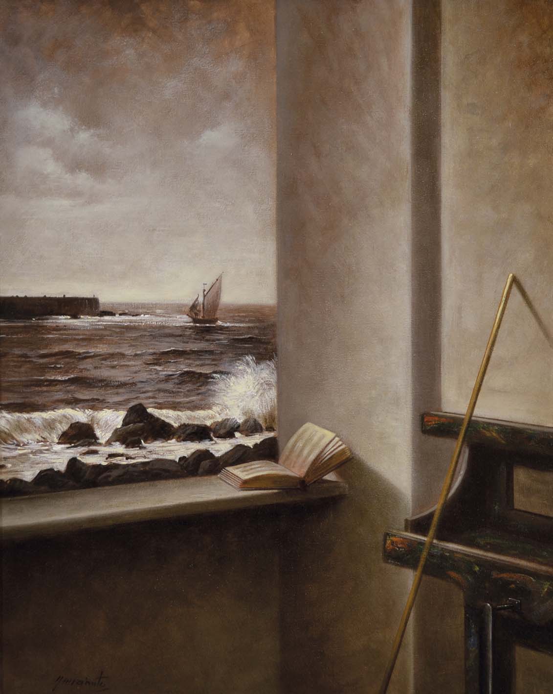 NUNZIANTE ANTONIO Napoli 1956 Il viaggiatore 2010 olio e tempera all'uovo su tavola 50x40 firma in basso a sinistra, firma data e titolo al retro dell'Archivio Antonio Nunziante nr. Arch. AN 010-2208 A su foto, certificato di autenticità della Galleria d'Arte Orler Favaro Veneto "Antonio Nunziante" Catalogo Generale Vol. IX ed. Electa