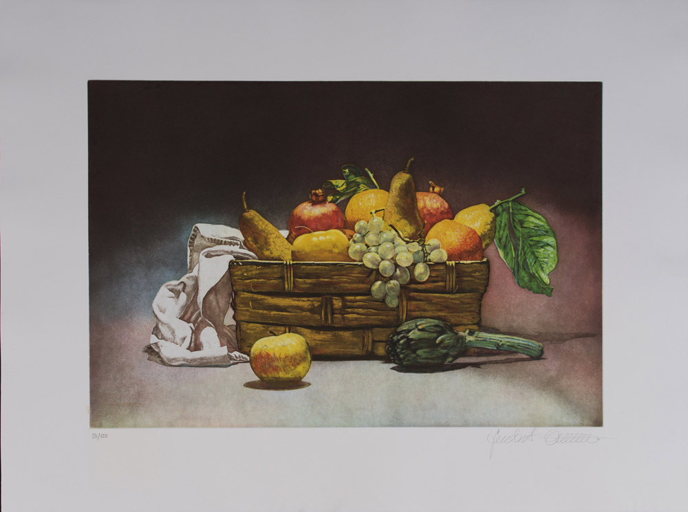 FERDINANDO QUINTAVALLA (1951)Cestino di fruttaAcquaforte a otto coloriFoglio...