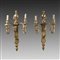 Coppia di appliques a due fiamme in legno intagliato e dorato a motivi...