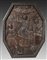 Grande pannello ottagonale in legno scolpito con scena religiosa, martiri e...
