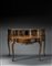 Scrivania di forma mossa in noce e radica, piano con alzata a quattro...