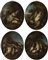 Gruppo di quattro ovali raffiguranti cacciagioni, olio su tela (cm 43,5x36)...