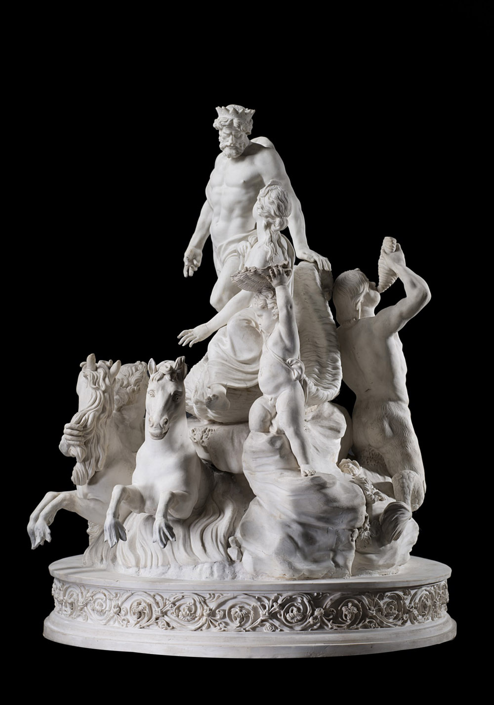 Gruppo da centro "Trionfo di Nettuno e Anfitrite", modello di Filippo Tagliolini in biscuit della Real Fabbrica Ferdinandea, 1785-1790 (h. cm 53 circa) Biscuit centerpiece of "Triumph of Neptune and Amphitrite" Filippo Tagliolini, Real Fabbrica Ferdinandea. Naples, 1785-1790