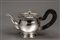 Teiera in argento di forma bombata a corpo liscio con presa del coperchio tornita, cesellata e decorata a foglie, ansa sagomata in legno ebanizzato. Argentiere Henrich Pettian, San Pietroburgo 1818 (h. cm 13) (gr lordi 620) (lievi difetti) Provenienza Collezione del Vecchio, Milano. Etichetta alla base Silver teapot. St. Peterburgh, 1818 (minor defects)