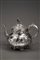 Teiera di forma bombata in argento sbalzato a foglie e fiori, iscritta in un...