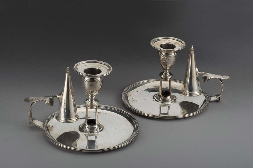 Coppia di bugie inglesi in argento. Londra, 1793 (h. cm 9; d cm 15) (gr 540...