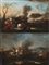 Maestro della fine del secolo XVII "Battaglia di cavalleria" coppia di oli su...