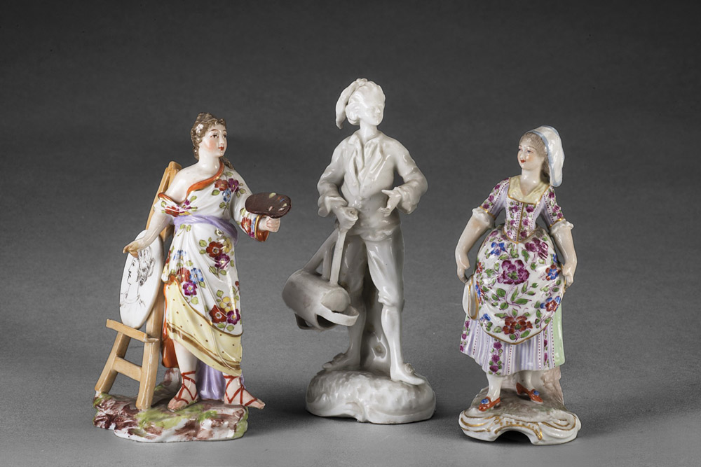 Manifatture ed epoche diverse, lotto composto da tre statuette in porcellana...
