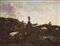 Lotto 421 | Maestro fiammingo operante a Roma del secolo XVIII "Paesaggio fluviale con...