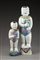 Due statue in porcellana raffiguranti fanciulli con in mano vasi fioriti, decorate a smalti della Famiglia Rosa fencai (una con restauro) Cina, sec. XVIII Two Famille Rose figures of boys. China, 18th century (one restored) (cm 30x7x5,5; 20x6,5x5)