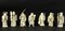 Sette statuette in avorio inciso, con vari personaggi, Cina, XX sec.