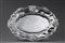 Vassoio ovale in argento con bordo mistilineo gradinato e fregi sbalzati....