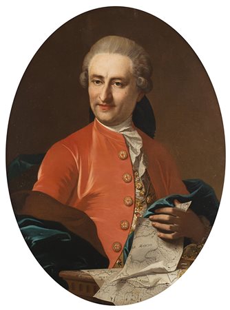 Maestro del sec. XVIII "Ritratto di cartografo" olio su tela ovale (cm 84x66) in cornice 18th-century master "Portrait of map maker" oil on canvas. Framed