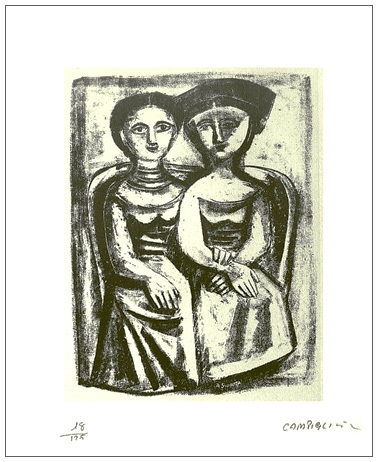 MASSIMO CAMPIGLI Berlino (Germania) 1895 – St. Tropez (Francia) 1971 A Giuditta 1952 Litografia es.18/125. Firma e data in b. a d., titolo sulla lastra in b. al c. (45,8 x 34 foglio – 22,5 x 17 lito.) Tiratura: 125 es. numerati e firmati e datati + alcuni es. prova (non tutti firmati), su carta Fabriano per la cartella “Campigli La Ruche” contenente 10 litografie. Pietre distrutte. Editore: N.R.F., Parigi, 1952. Stampatore: Cavallino, Venezia. Pubbl.: “Campigli Catalogo ragionato dell’opera grafica (Litografie e Incisioni) 1930 – 1969” a cura di Francesco Meloni e Luigi Tavola, Edizioni Graphis Arte, Livorno, 1995, p.103. B.A.: 240