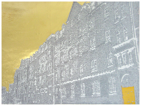 LEONIDA DE FILIPPI Milano 1969 Paesaggio urbano T.m., stampa inkjet e foglia...