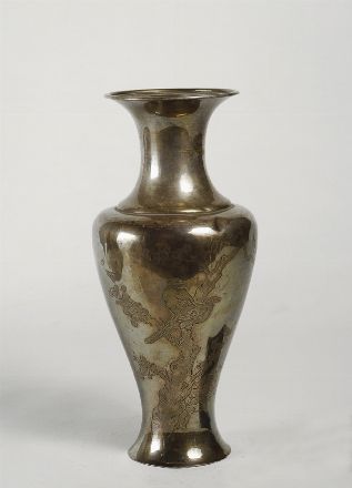 Vaso in argento, decorato con incisioni raffiguranti uccelli, marcato sul fondo, Cina, fine XIX-inizi XX sec., gr. 610; cm. h. 28.