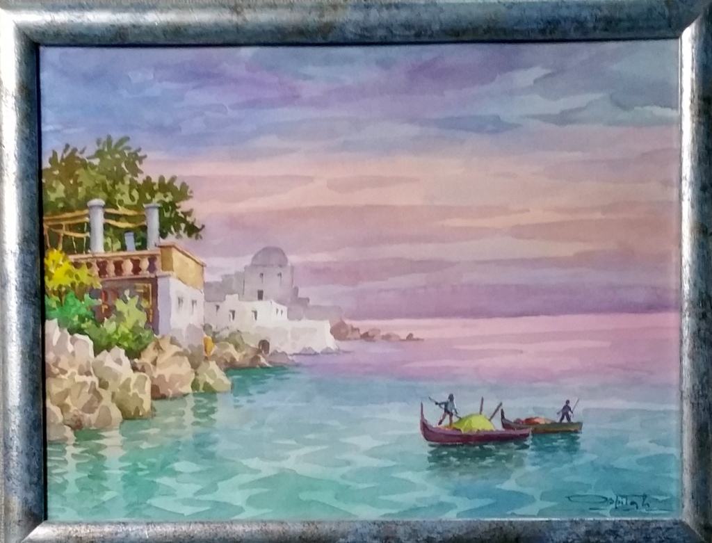 Giovanni Ospitali "Rientro al tramonto" Acquerello su cartoncino cm 30x40...