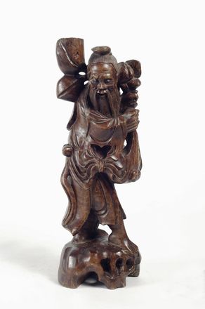 Saggio scultura in legno di rosa, con piccoli particolari in avorio, Cina,...