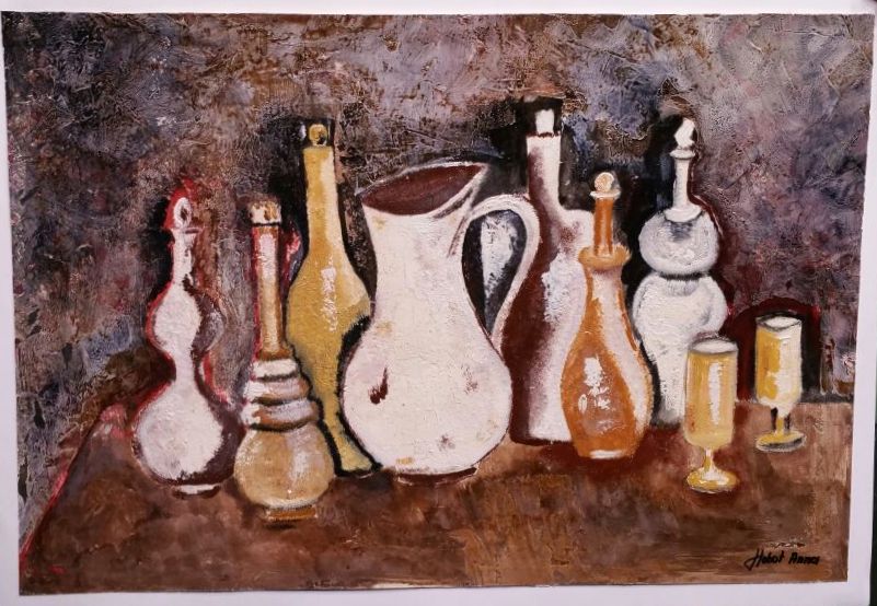 Anna Hobot "Natura morta" olio e smalti e sabbia su cartoncino spesso cm 45x66 - autentica dell'artista su foto