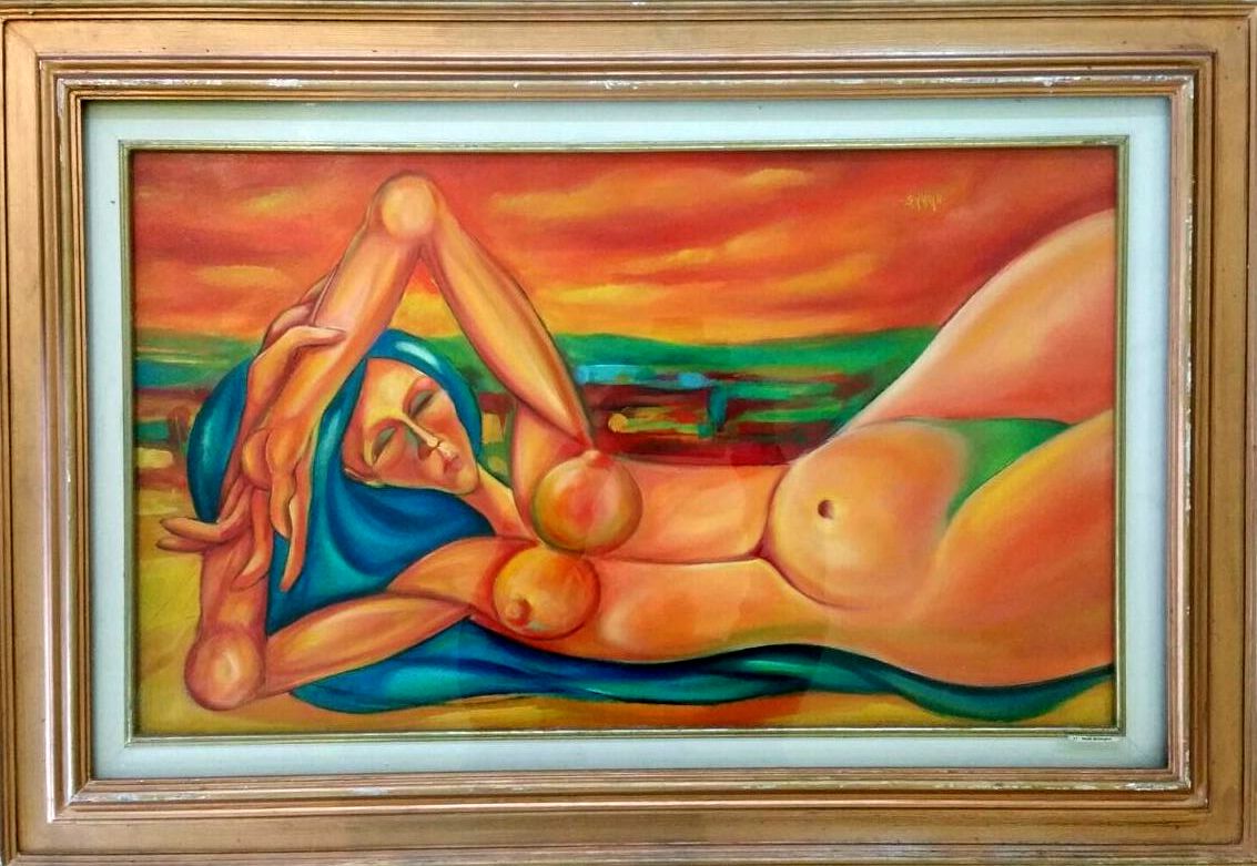 Lotto 71 | Gianbar "Nudo ecologico" olio su tela incollata su tavola cm 45x65,5 opera...