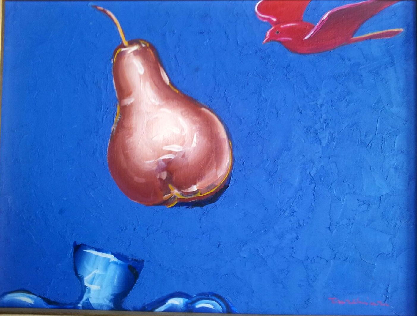 Aldo Turchiaro "Pera e colomba" olio su tela cm 30x40 Firma in basso a dx - Autentica Galleria L'Alfiere-TO