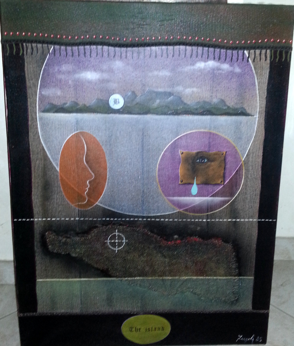 Sergio Fergola "L'isola misteriosa" 1985 olio su tela cm 80x60 - Firma e anno...
