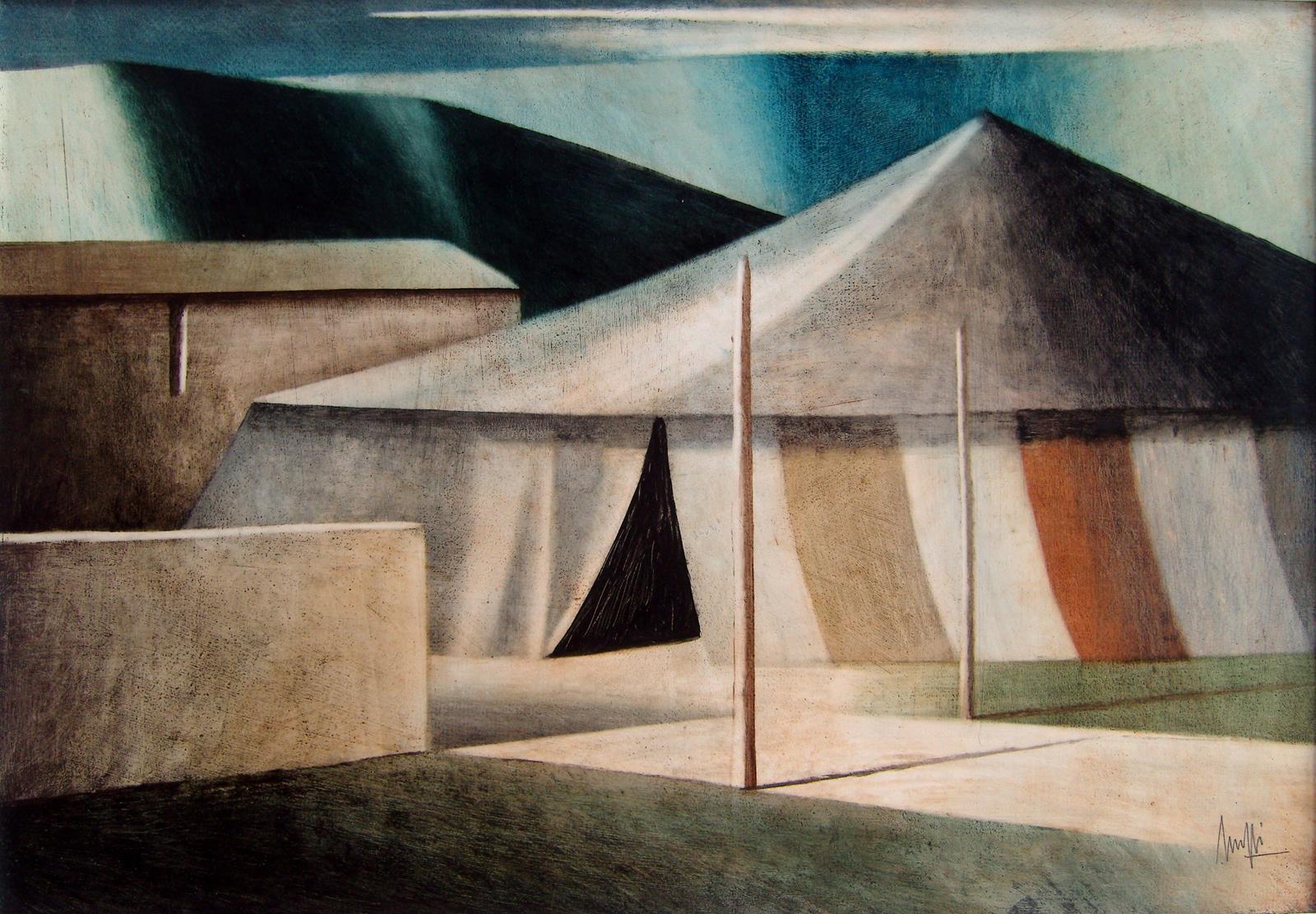 Lotto 144 | Marcello Scuffi "Circo" Olio su tela cm 35x50 - Firma in basso dx e sul retro...