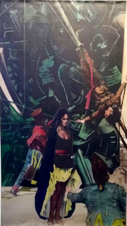 Gianni Bertini "Le massacrade..." 1972 Mec art su tela cm 102x58 - Firma anno...