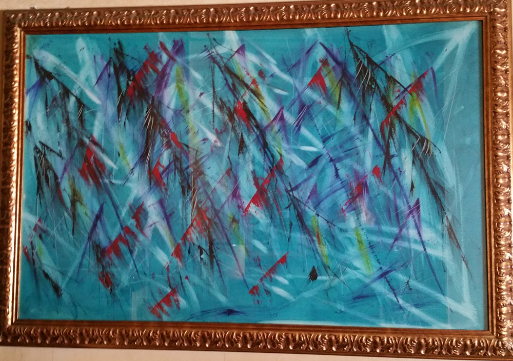 Tommaso Russo "Composizione in Blu" Olio su tela cm 100x150 - Firma e titolo al retro