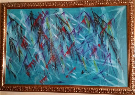 Tommaso Russo "Composizione in Blu" Olio su tela cm 100x150 - Firma e titolo...