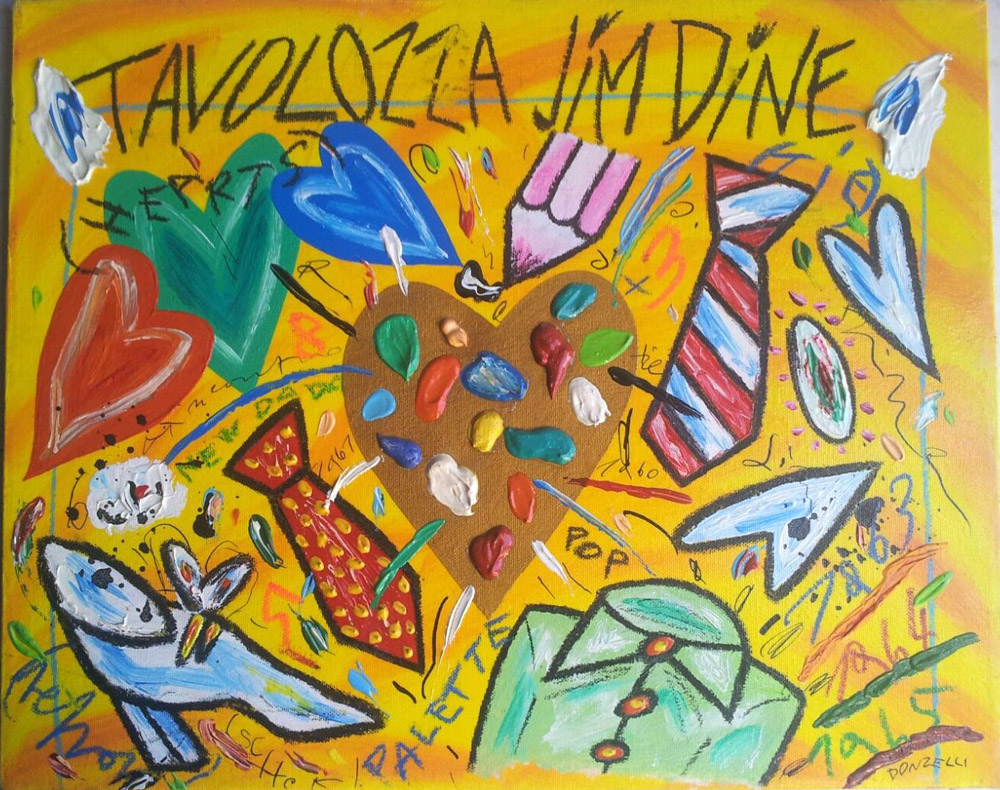 Bruno Donzelli "Tavola Jim Dine"Olio su tela cm 40x50 - Autentica dell'artista su foto