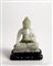 Buddha scultura in giada, su base lignea intagliata, Cina, inizi XX sec., cm. h. 14.