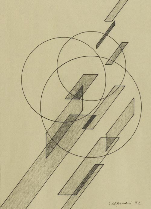 Luigi Veronesi Milano 1908 1998 Senza titolo 1982, China e grafite su carta, cm. 30x25, Firma e data in basso a destra. Autentica dell'Artista su foto.