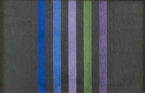 Elio Marchegiani Siracusa 1929 Grammature di colore 1975, Grammature di colore su lavagna, cm. 23,5x34,5, Sul verso: firma, data, titolo e descrizione; Timbro dell'Artista; Etichetta dell'Archivio Marchegiani. Foto che ritrae l'Artista con l'opera. Autentica dell'Artista su foto.