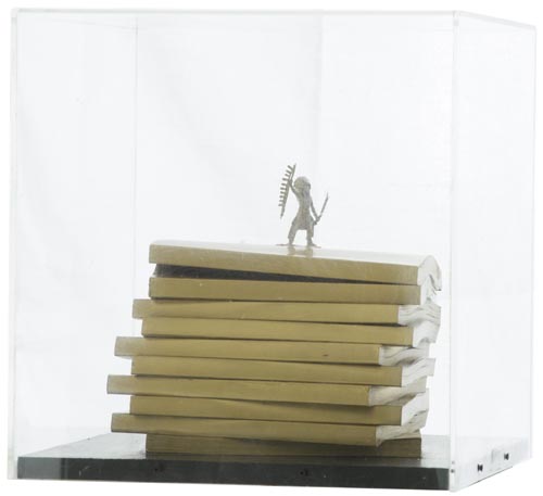 Jean-François Bory Parigi 1938 L'Eternitè 1984, Assemblaggio su tavola + oro spray in teca di plexiglas, cm. 34x34x35, Sotto la base: etichetta "Sarenco club", Verona, con firma e data. Autentica dell'Artista su foto.