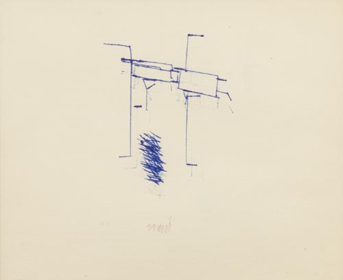 Sergio Romiti Bologna 1908 Bologna 2000 Senza titolo , China su carta, cm. 19,5x23, Firmato in basso al centro; Sul verso: etichetta con descrizione. L'opera fa' parte di un serie di disegni eseguiti per R.P. Blackmur, Poesie, Edizioni del Triangolo, Milano. Certificato di Provenienza Collezione Sanesi, su foto.